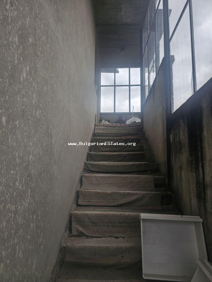 Продаваме имот в село Извор, което се намира на 20 км центъра от град Бургас. Къщата се състои от два етажа с обща площ от 120 кв.м. свързани с външно стълбище.