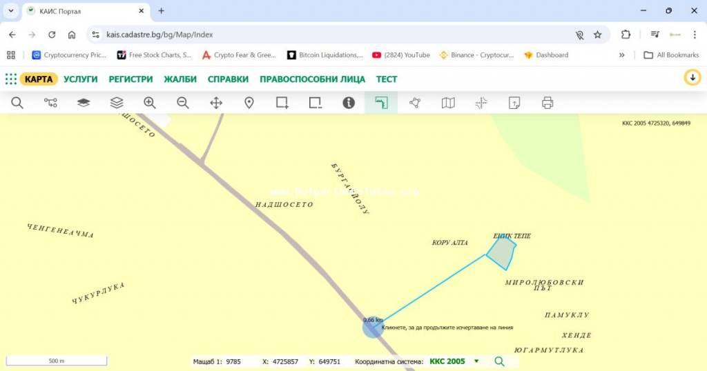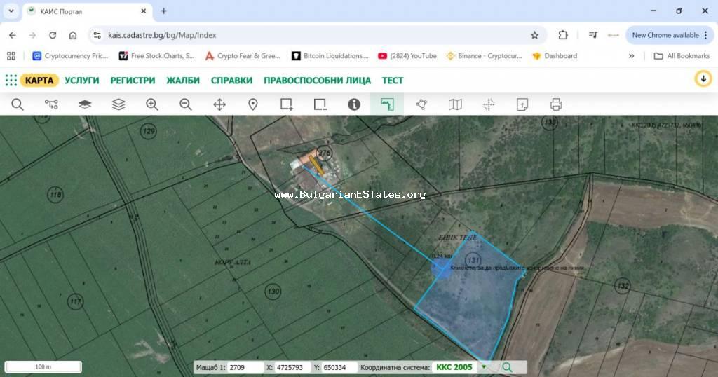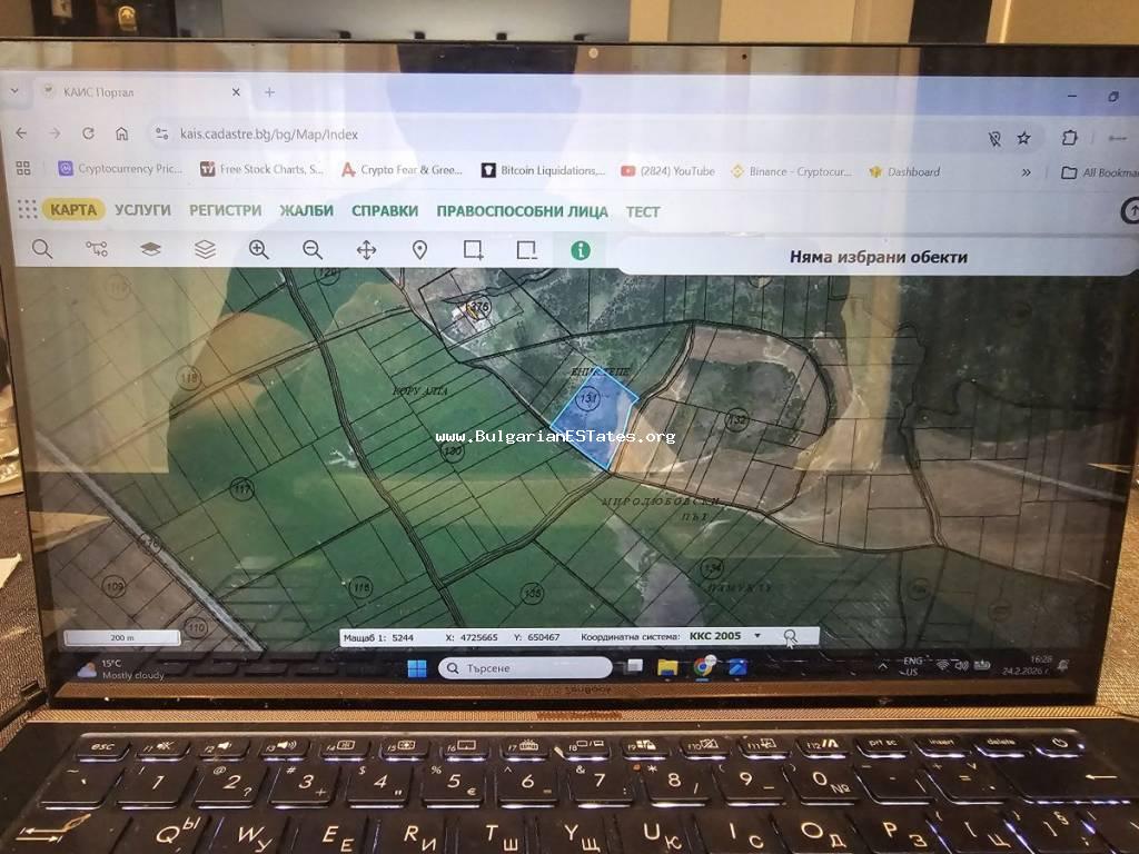 14,047 sq.m and is situated approximately 600 m from the main road between the town of Aytos and the city of Burgas. About 200 m from it there are two additional neighbouring plots with areas of
