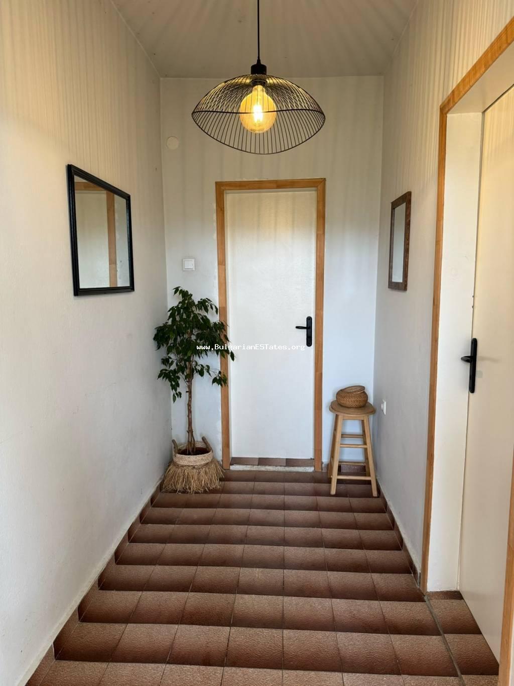 България, е подходящ избор за хора, търсещи нова къща с възможност за довършване по собствен вкус, спокойствие и панорамна гледка в близост до Бургас и морето.